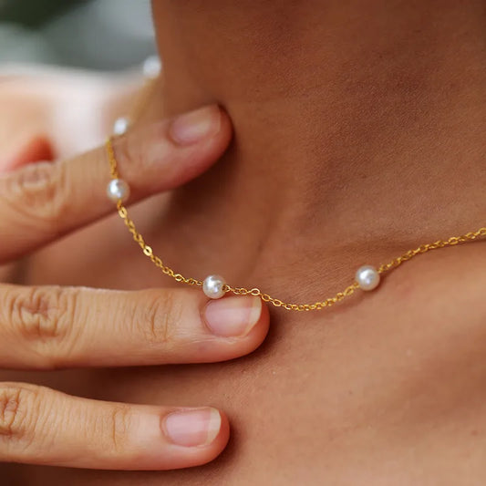201 Stainless Steel 18K Gold Plated Cute Simple Style Chain Solid Color Necklace Simple Minimalist Summer Beaded Jewelry